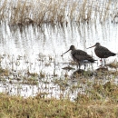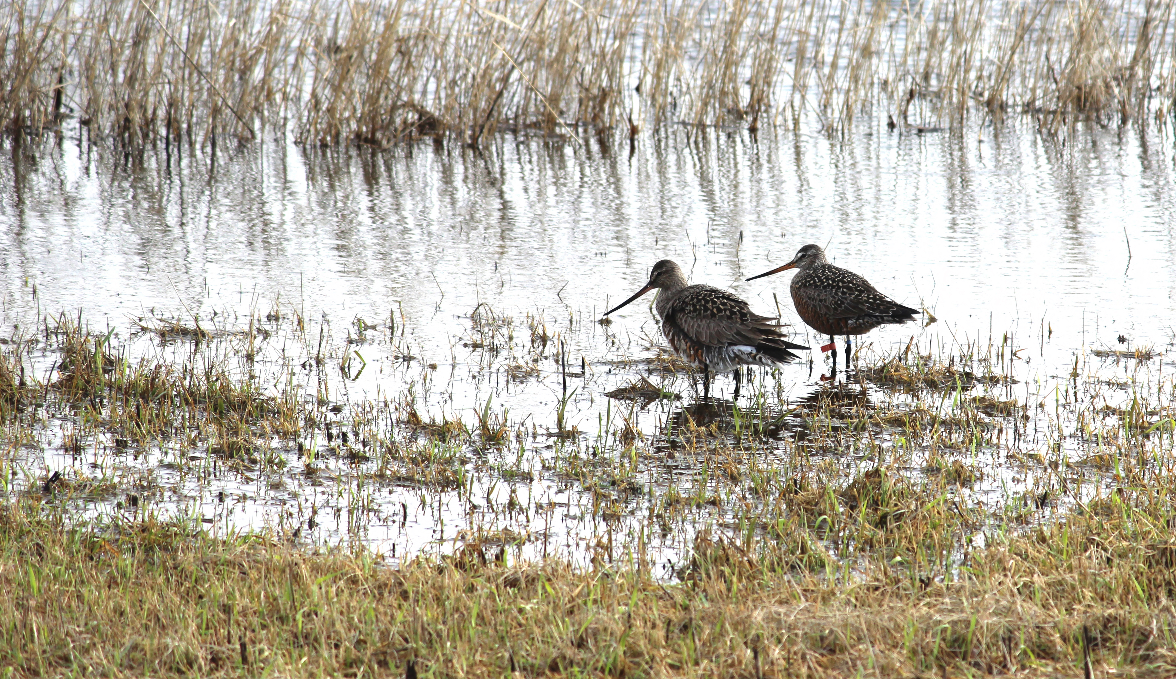 Look carefully in this photo to see the alphanumeric flag and color bands on one of the godwits. These bands are used to identify individual birds and track their migrations, movements, lifespan, and health.