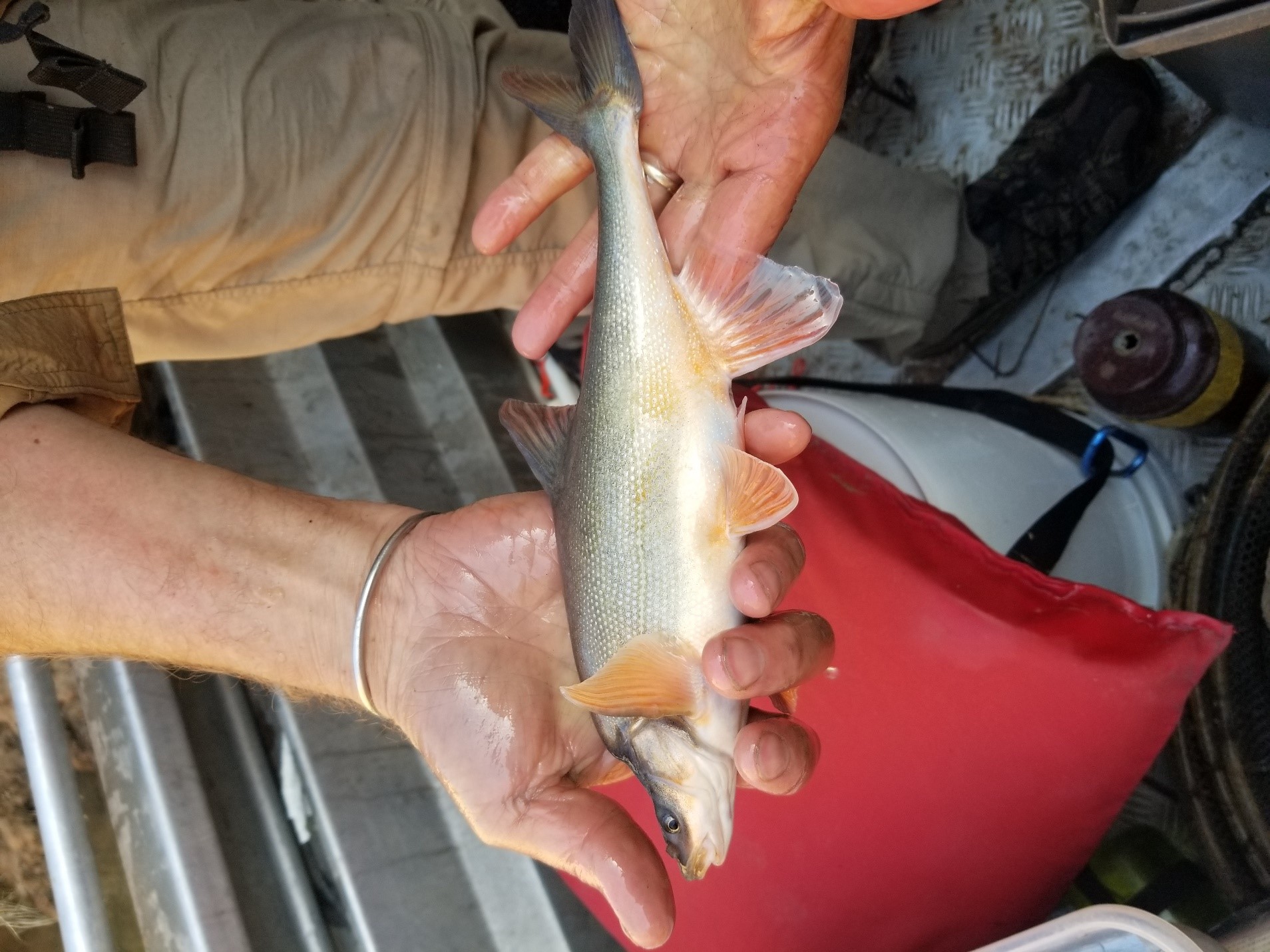 A Humpback Chub captured during sampling in the Little Colorado River.