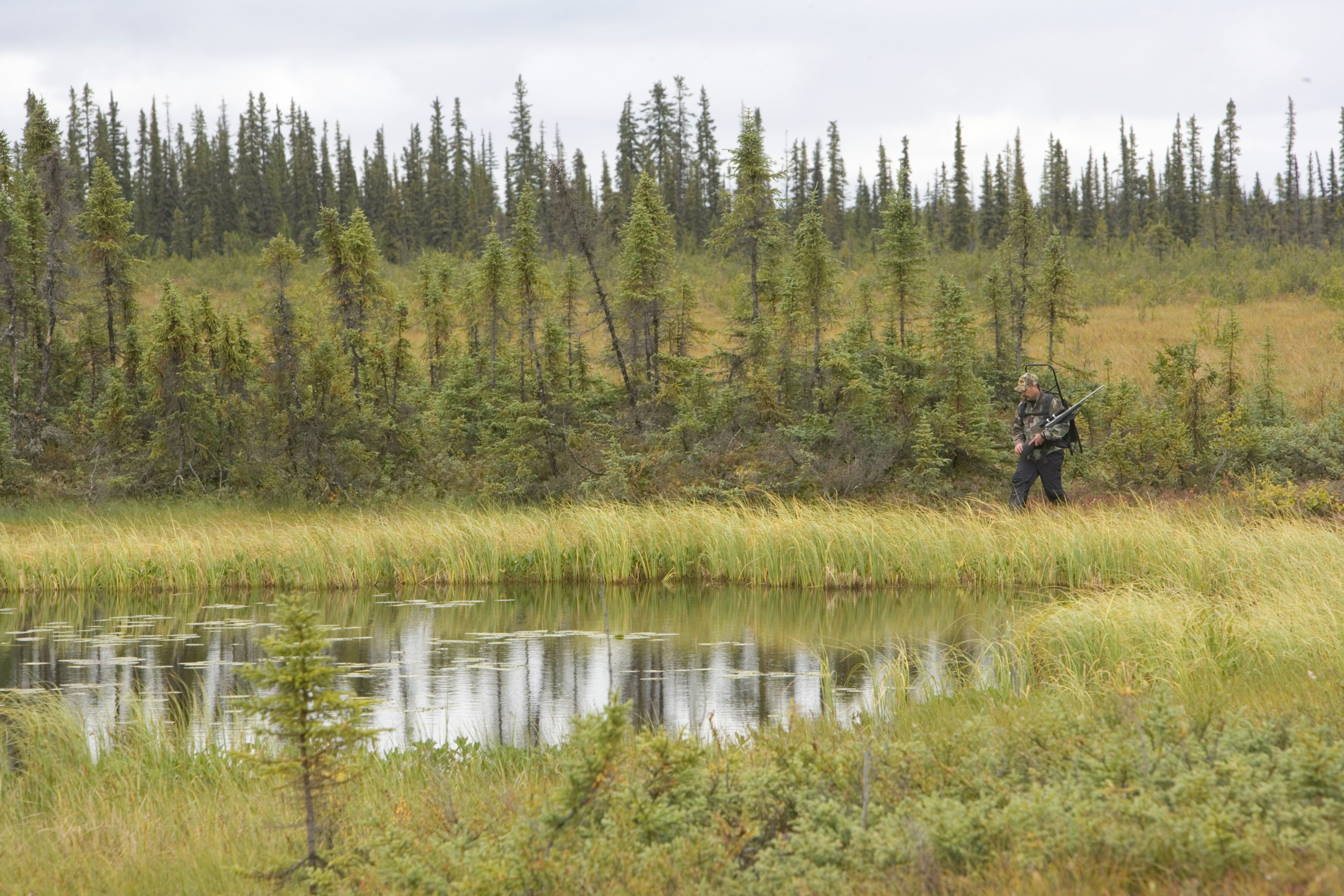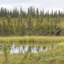Hunter walking through wetlands at Selawik National Wildlife Refuge.