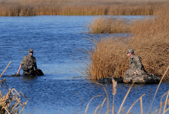 Hunters wade through the wetlands while hunting for waterfowl on Lower Klamath National Wildlife Refuge. Image taken from USFWS Pacific Southwest Region Flickr page.
