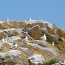 Herring gulls roosting on elegant sunburst lichen covered rocks by Sara Giles/USFWS.