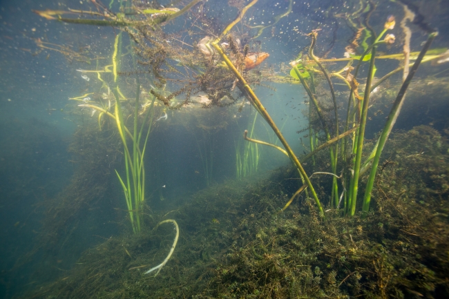 Invasive Hydrilla blankets the river with Spatterdock growing through the Wacissa River.