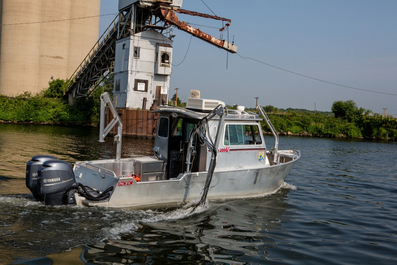 In late 2012 the Carterville Fish and Wildlife Conservation Office was approved to build a new sonar survey boat to aid in the fight against invasive carp. The "Carpe See-um" actively scanning a portion of the Chicago Sanitary and Ship Canal with split-beam and side-scan sonars.