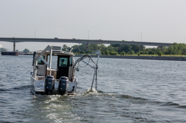 In late 2012 the Carterville Fish and Wildlife Conservation Office was approved to build a new sonar survey boat to aid in the fight against invasive carp. The "Carpe See-um" actively scanning a portion of the Chicago Sanitary and Ship Canal with split-beam and side-scan sonars.