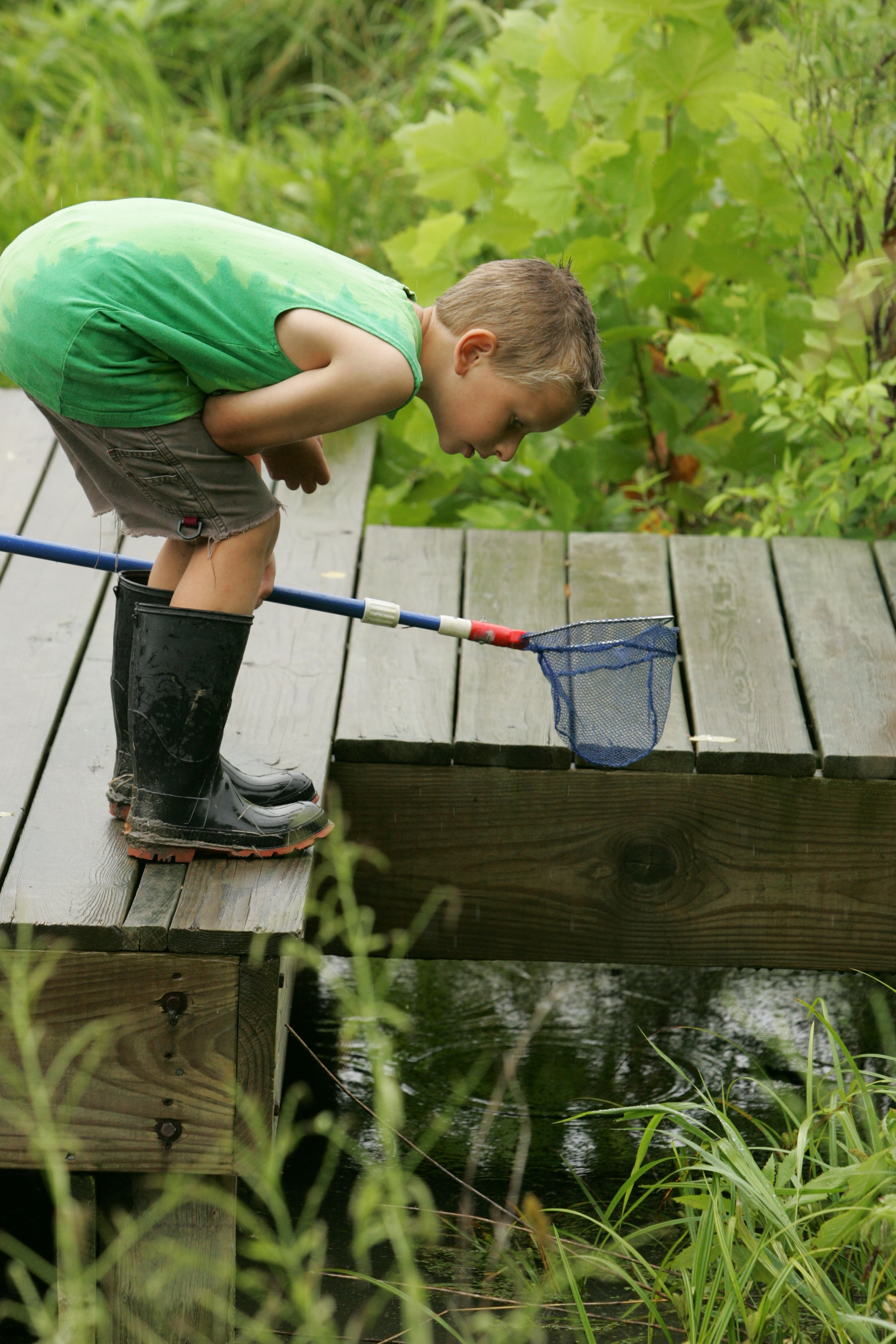 A boy enjoys looking for critters in the water on the refuge. One of the many things for children and adults to do.