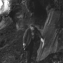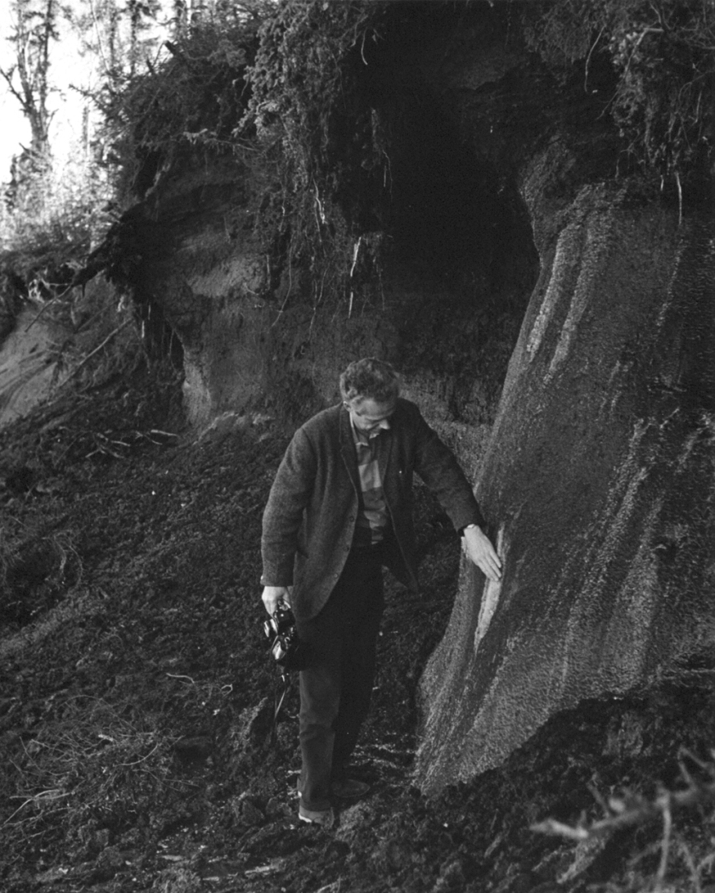 A man looks at the ice lens. Permafrost; ARLIS; Alaska;