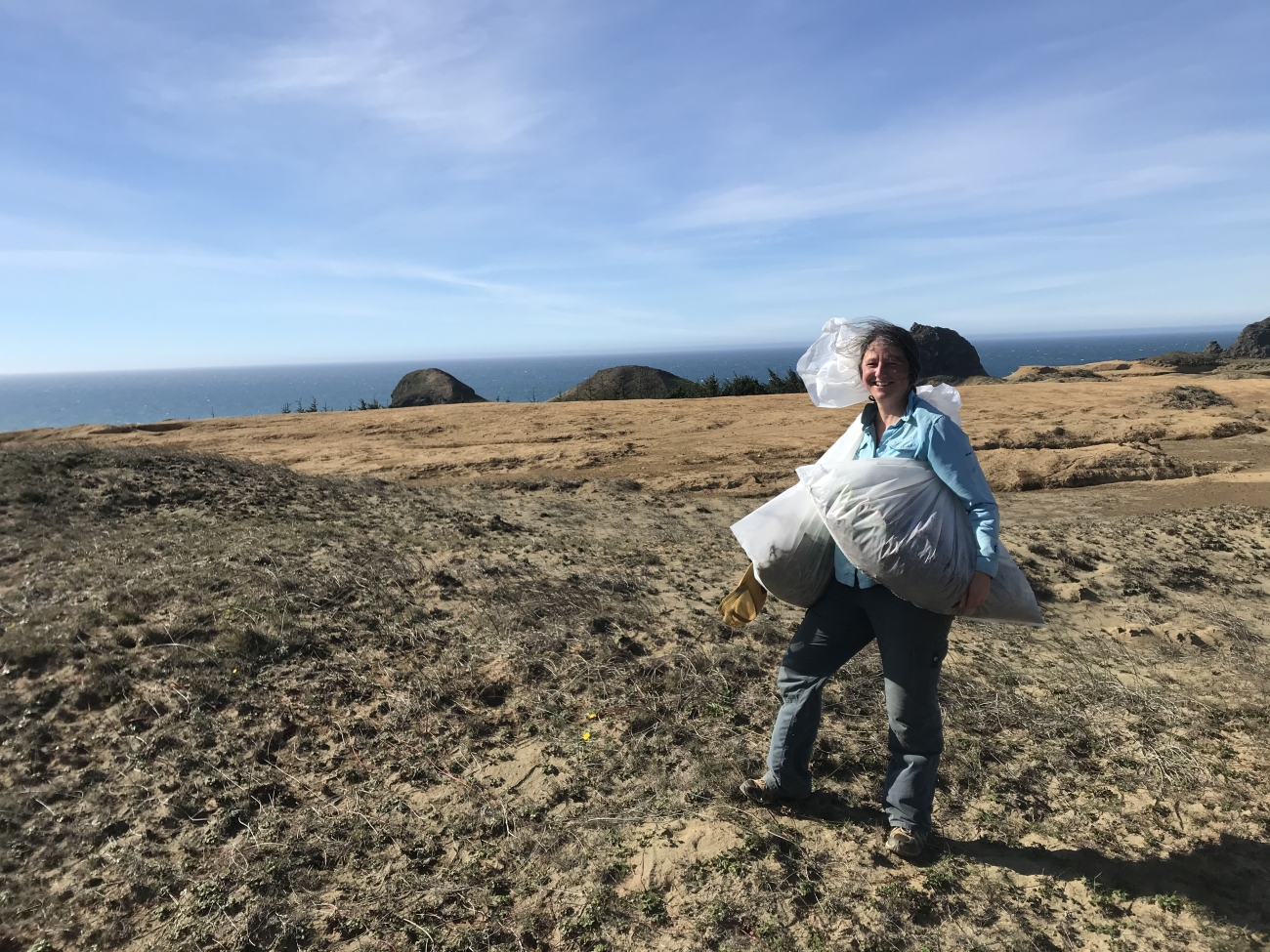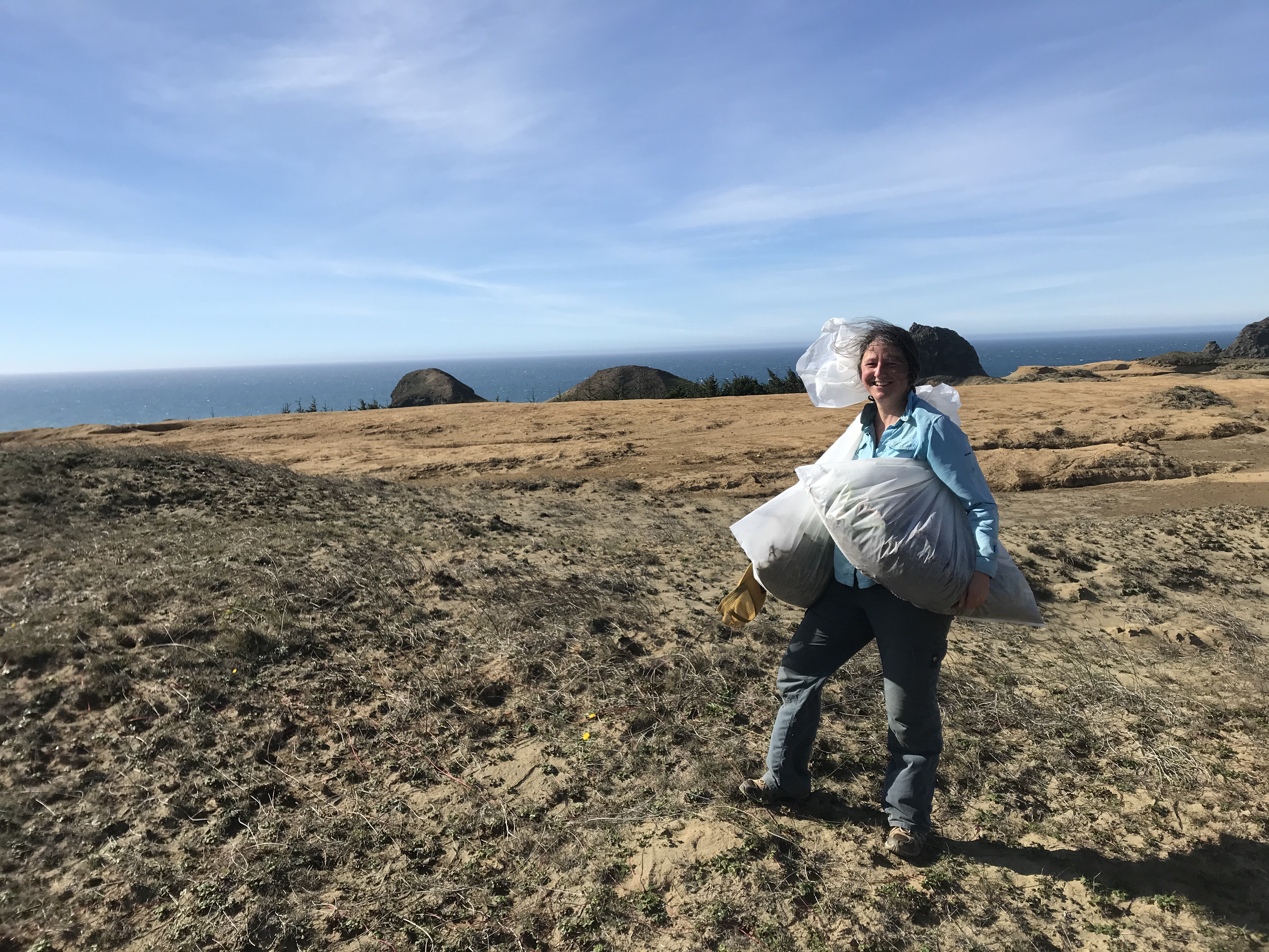 Volunteer assists with invasive plant removal.