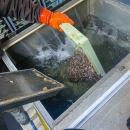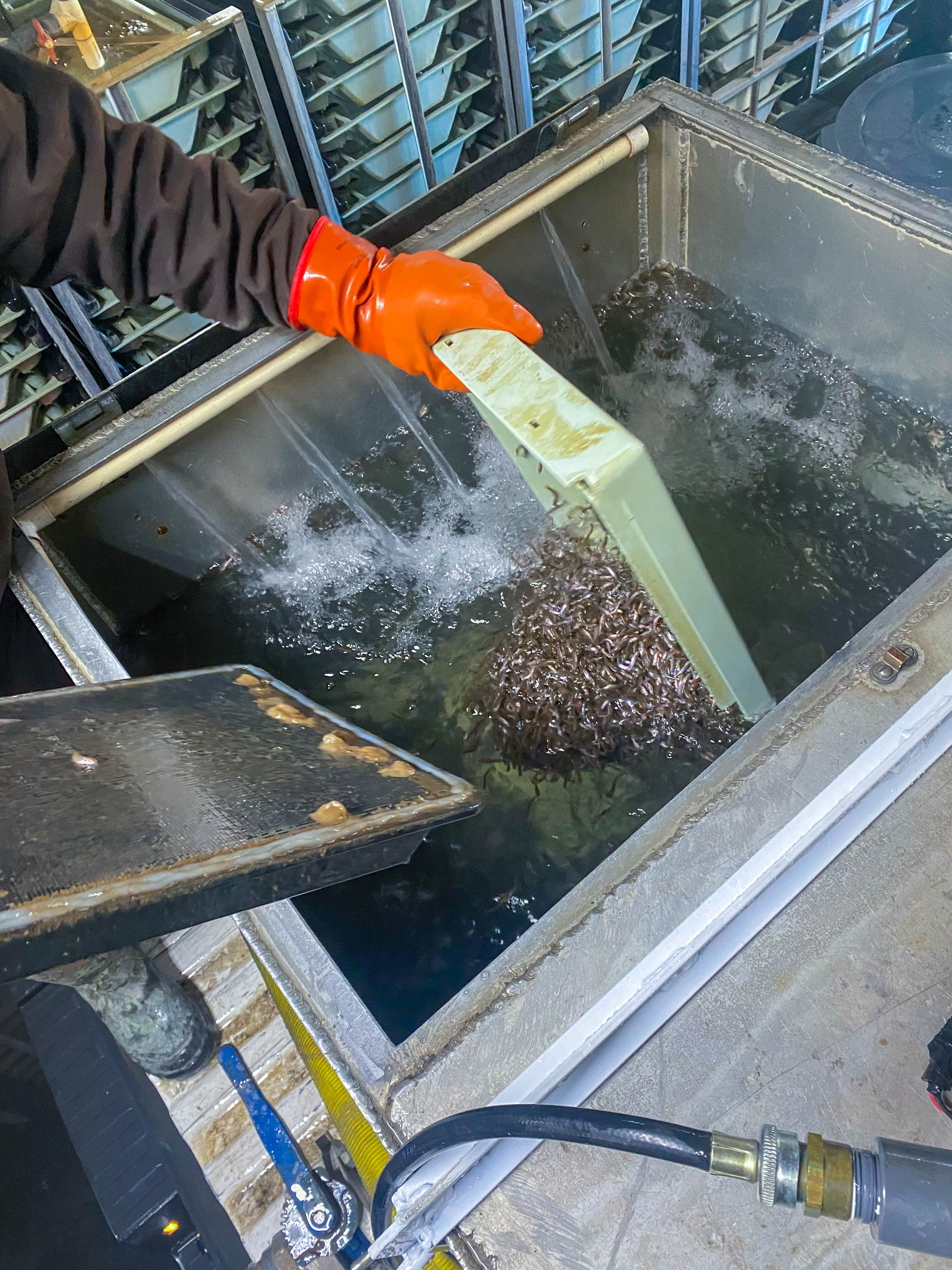 Fall-run Chinook salmon fry are dropped into a water tank to be loaded on a truck for release in the Sacramento River on December 17. Credit: Laura Mahoney/USFWS