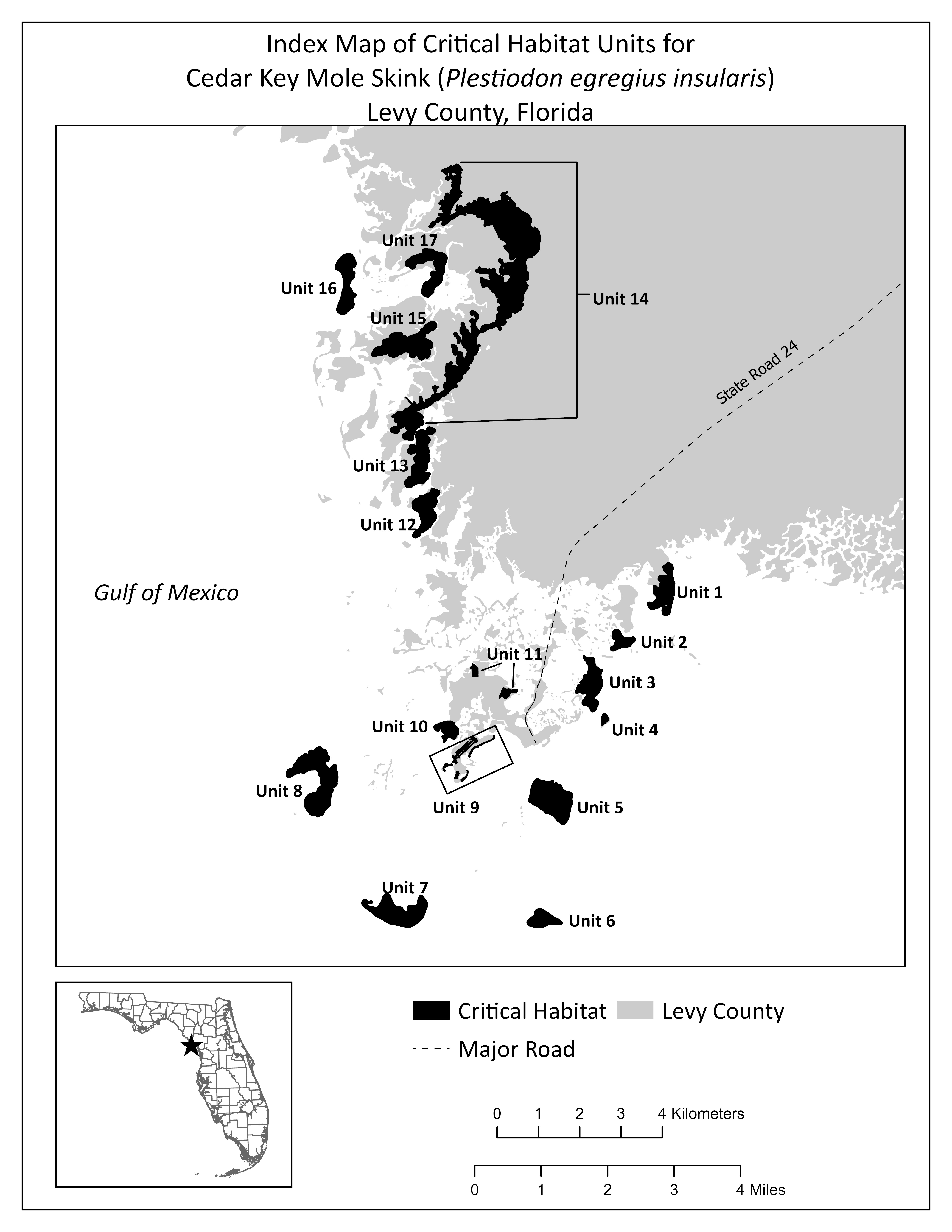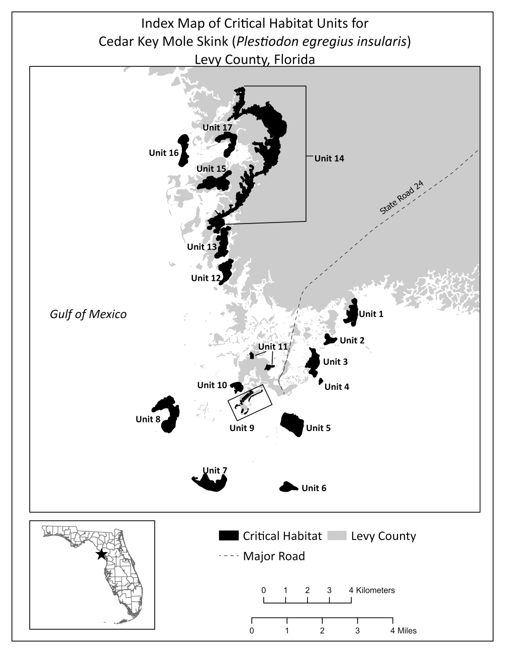 Index Map of Critical Habitat Units for Cedar Key Mole Skink