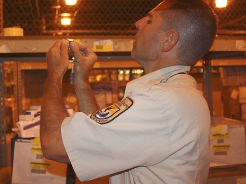 Inspector from the Elizabeth, N.J. Office of Law Enforcement examines imported watch.