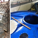 Wildlife Inspector Sims inspecting the transport of a live Siberian tiger on the left and live tiger sharks on the right.