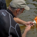 Instructor examines native mussel