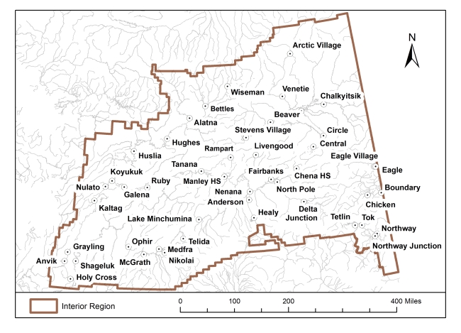 Map showing the boundaries of the Interior Region for the migratory bird spring/summer subsistence harvest.
