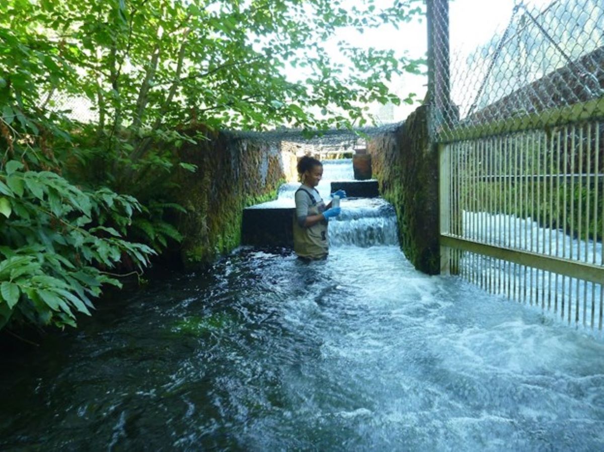 Rollins takes water samples with USFWS Fish and Aquatic Conservation in Washington.