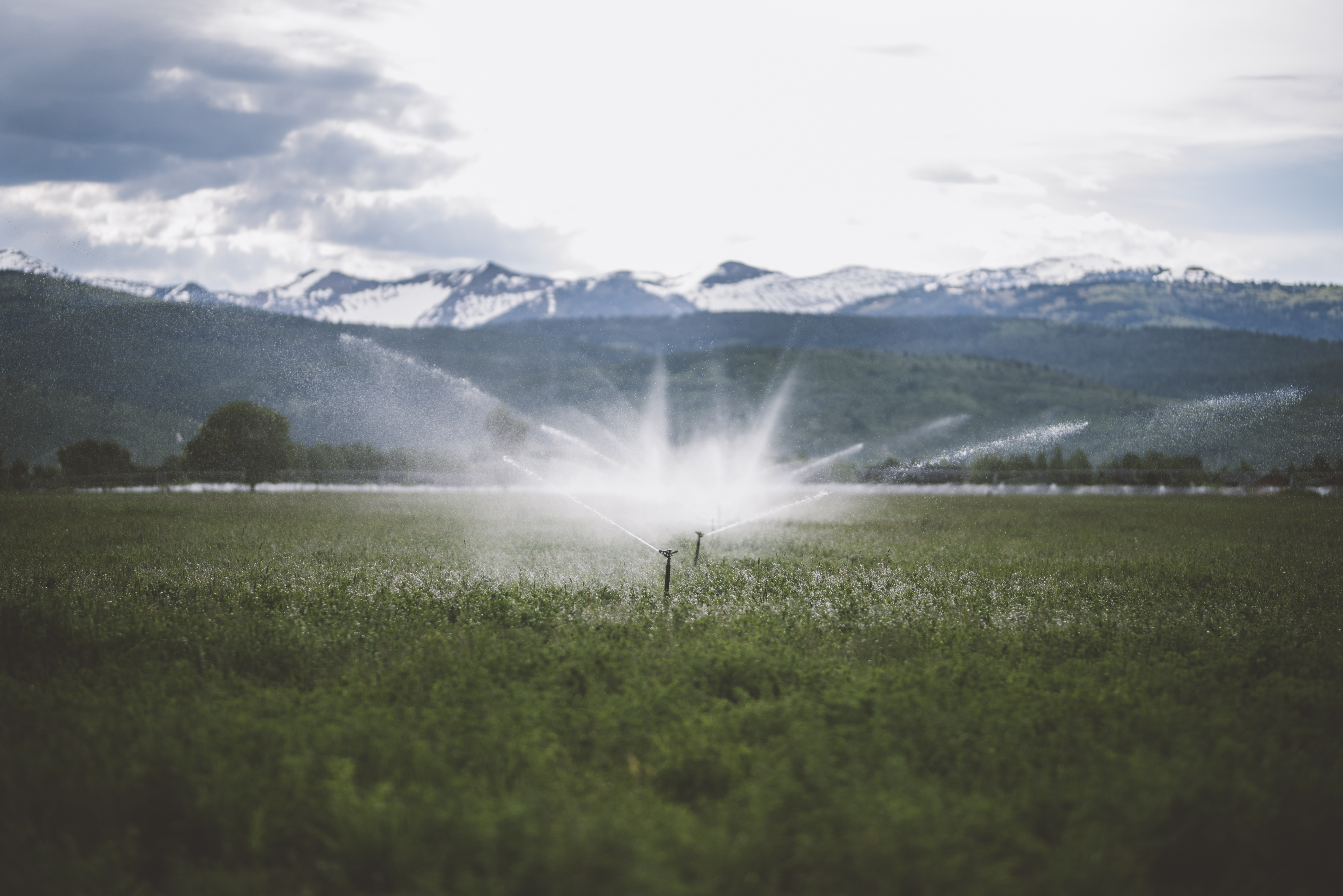 Irrigation watering in an agriculture field in the Teton Valley. The mission of the Teton Water Users Association is to keep working lands working by securing and maintaining a reliable and affordable supply of water to sustain agriculture, fish and wildlife, municipalities, and residential water users.