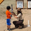 Isis Rivera Lopez teaches a child during a Try It Archery session.