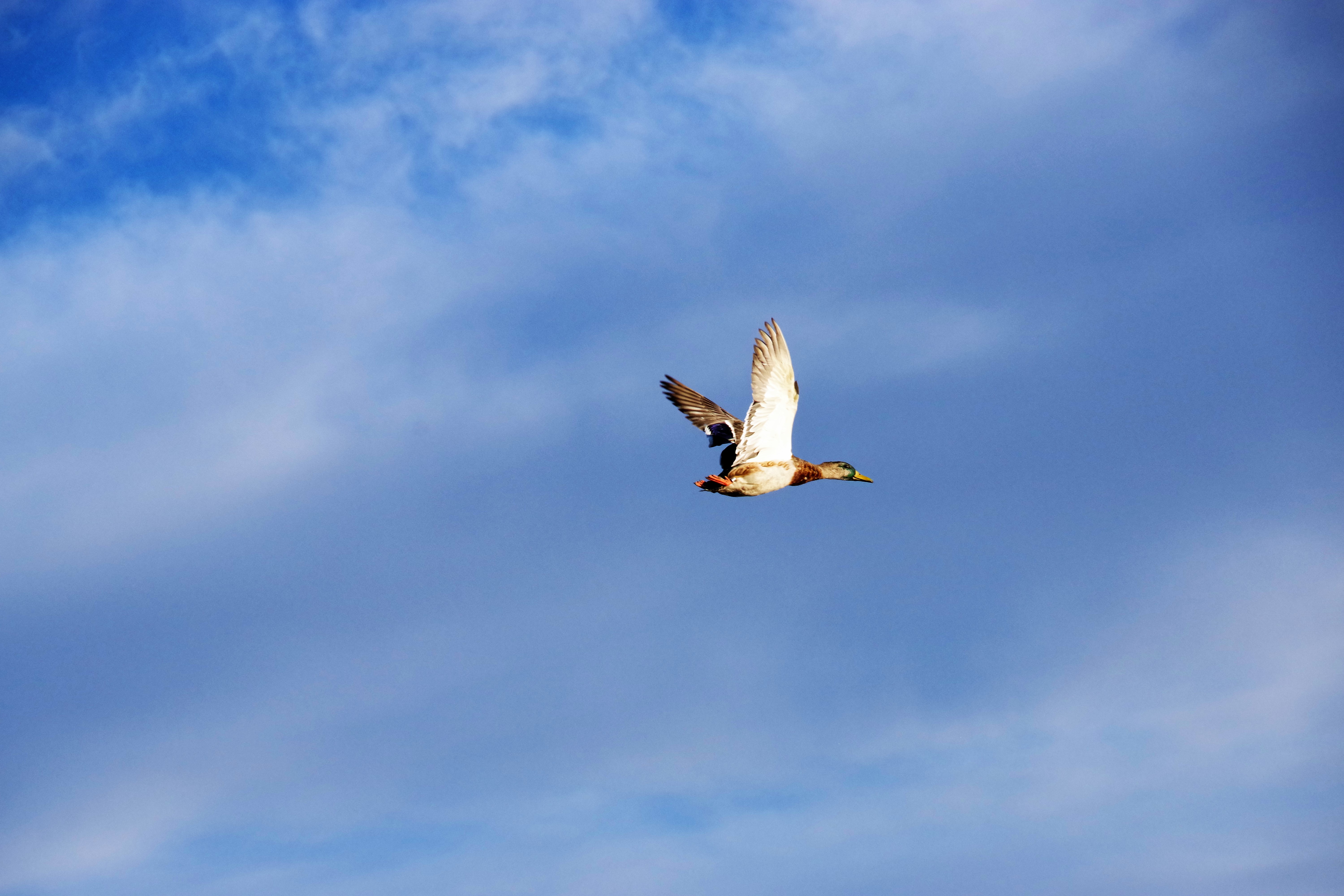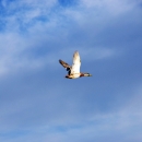 A Mallard drake takes flight after being banded and recorded at J. Clark Salyer National Wildlife Refuge.