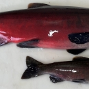 Both mature males, but certainly not the same. Most male coho salmon, like the adult on top, spend 18 months in fresh water and 18 months in salt water. The jack, as seen on the bottom, only spends about 6 months feeding in salt water before returning to fresh water to spawn (reproduce).