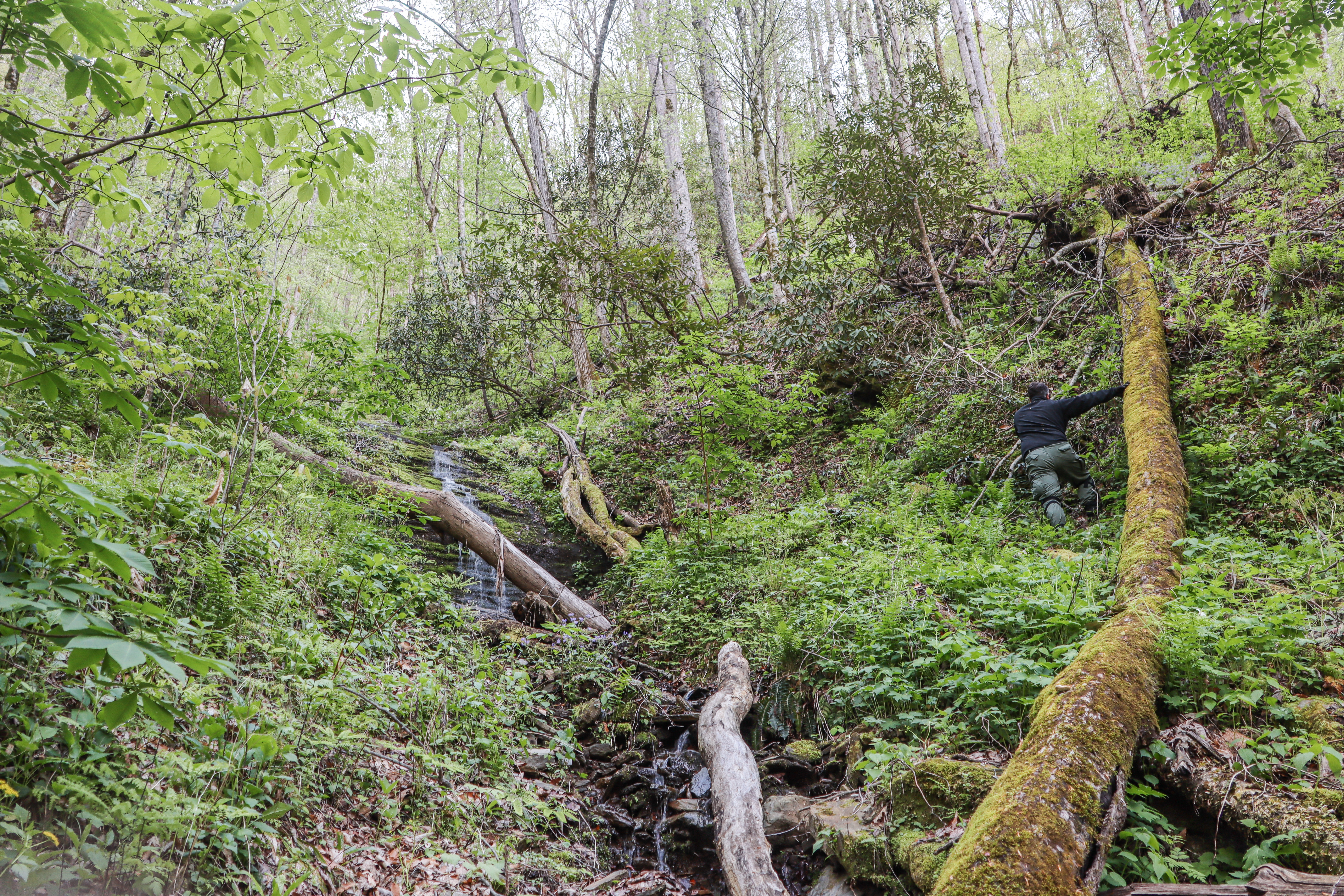 Biologist Jason Mays searches for noonday globe snails in the Nantahala River Gorge, Swain County, N.C.