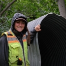 Jess Straub poses with a culvert that the Service hopes to remove within the next year.