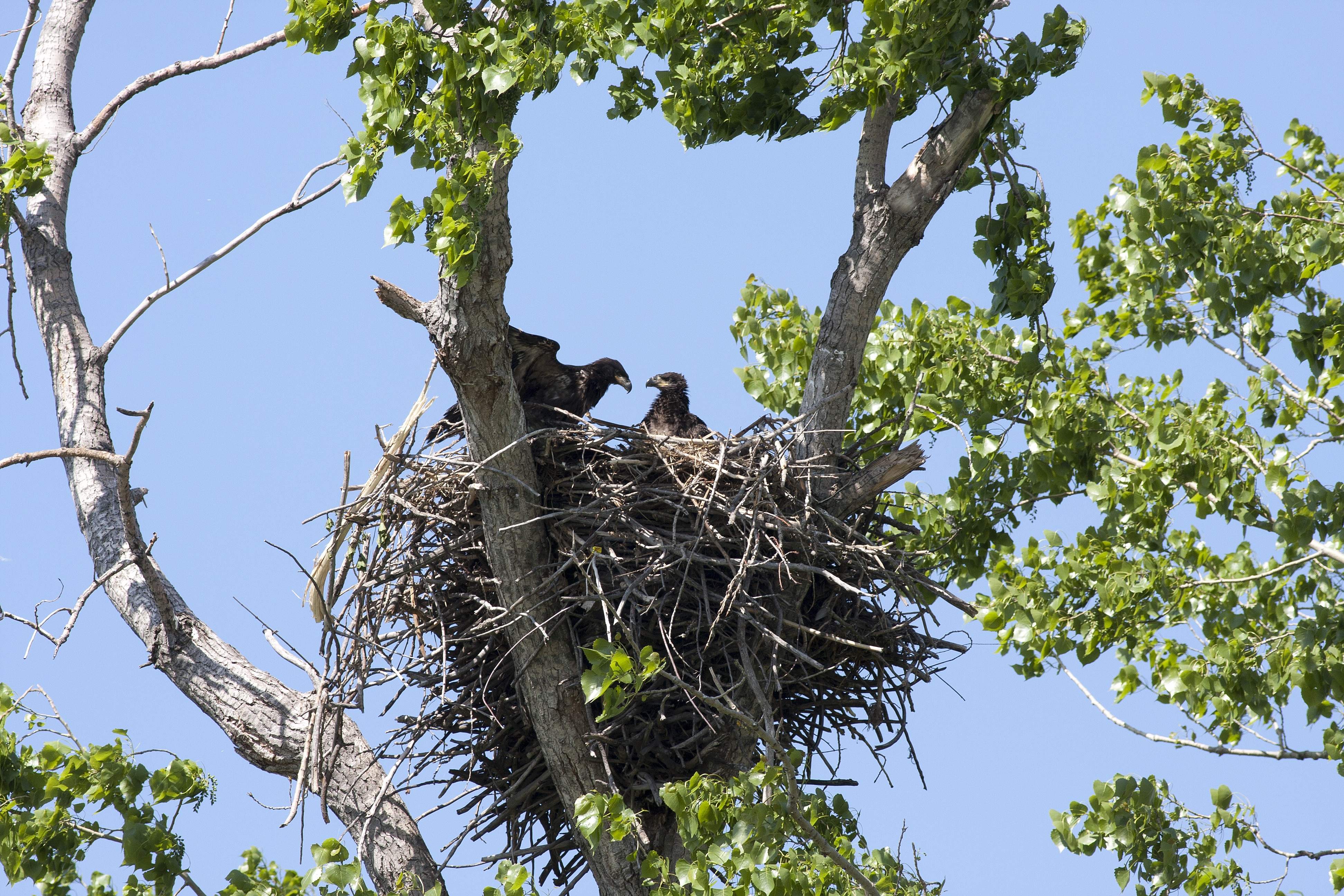 Juvenile bald eagles in a nest.