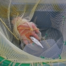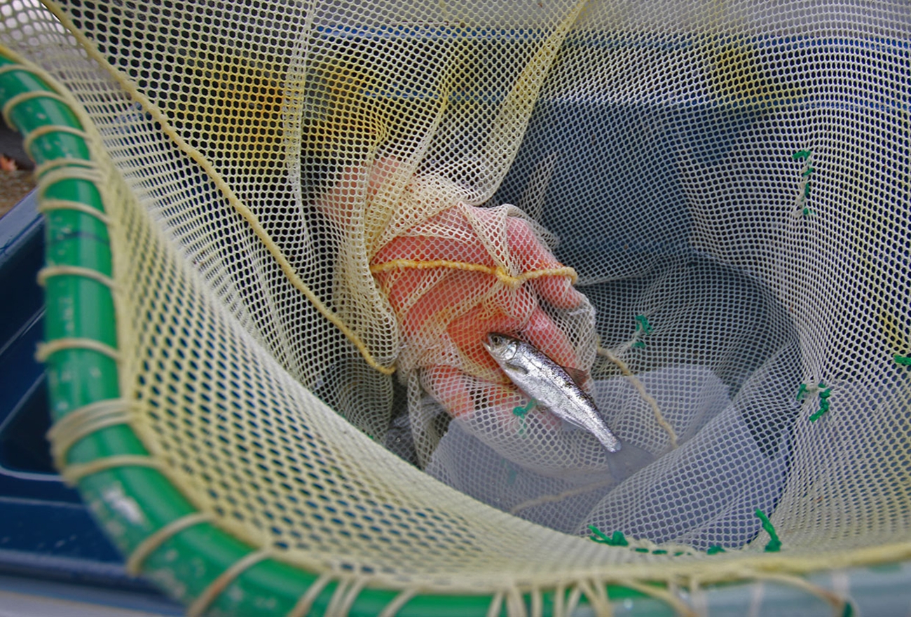 True nets a juvenile Chinook salmon from a raceway – the fish benefitting from the close partnership between lab and hatchery staff, and from her career’s worth of fish health research. Credit: Meagan Racey/USFWS