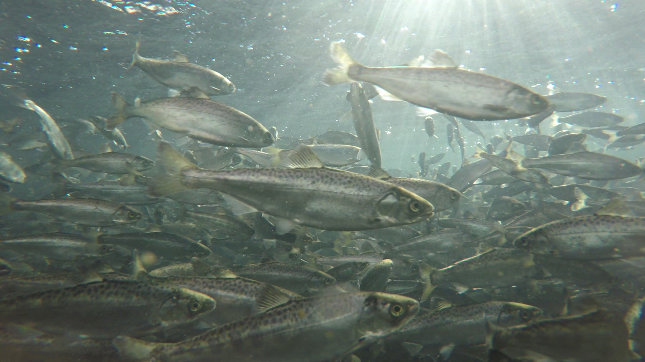 Chinook salmon swim in a raceway at the Coleman National Fish Hatchery. Each year Coleman NFH releases nearly 14 million fish into the Sacramento River system.