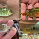 Top row left to right: Mayan cichlid (Cichlasoma urophthalmus), yellow belly cichlid (Cichlasoma salvini)