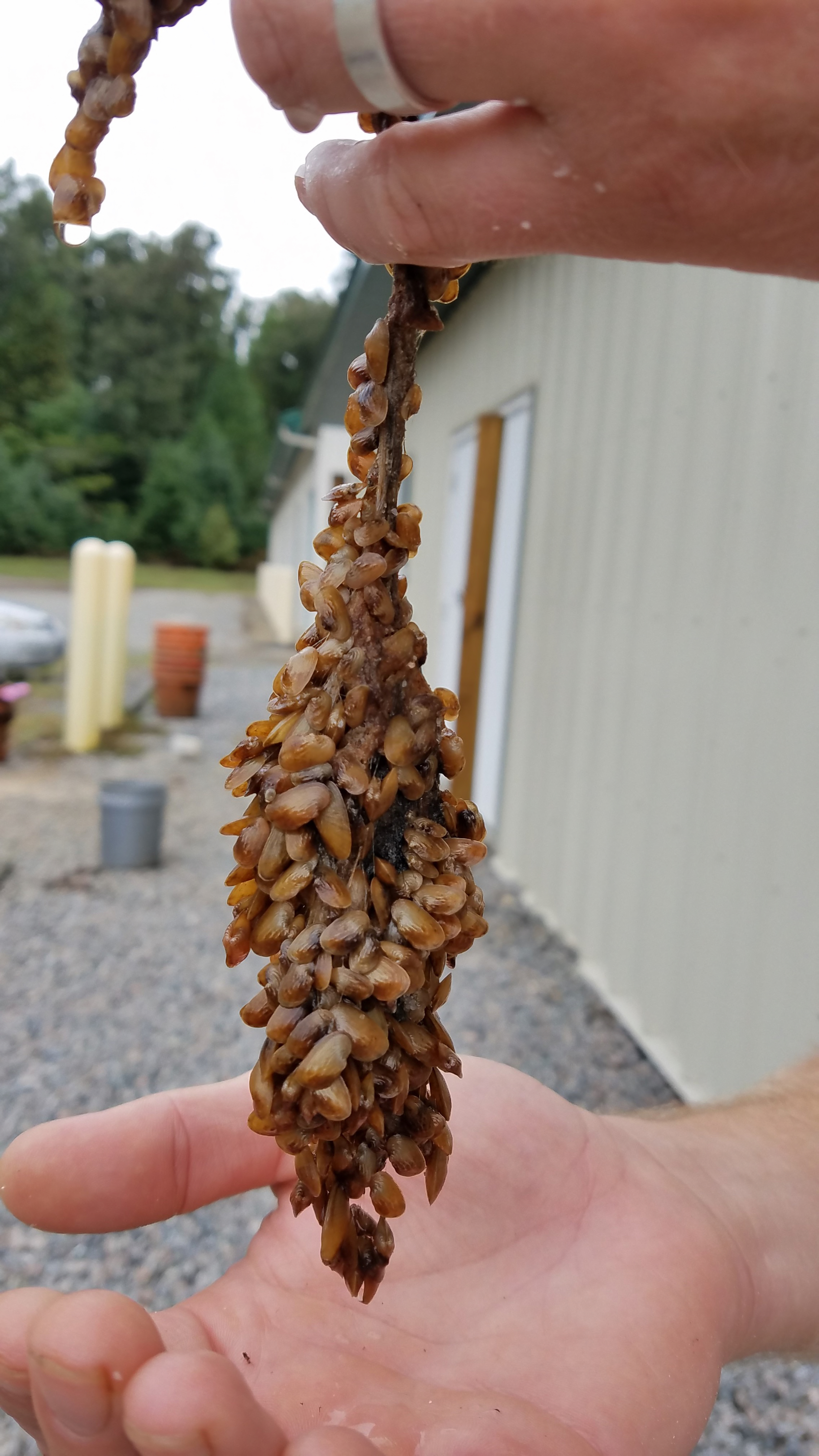 Juvenile eastern lampmussel (Lampsilis radiata) bound together by a mass of byssal threads. Photo: Amy Maynard, the Conservation Management Institute, Virginia Polytechnic Institute and State University.