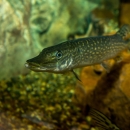 Juvenile Northern Pike in aquarium at Gavins Point National Fish Hatchery, South Dakota.