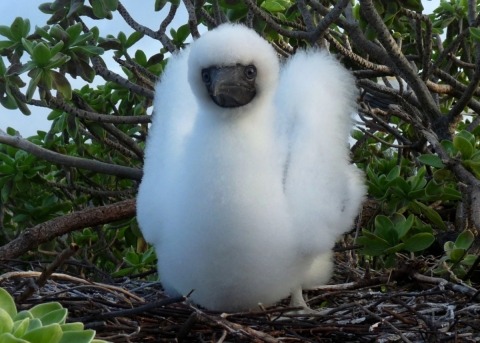 Photographer Laura M. Beauregard upset this Red-footed Booby chick nesting on Johnston Atoll in Pacific Remote Islands Marine National Monument Dec. 2012