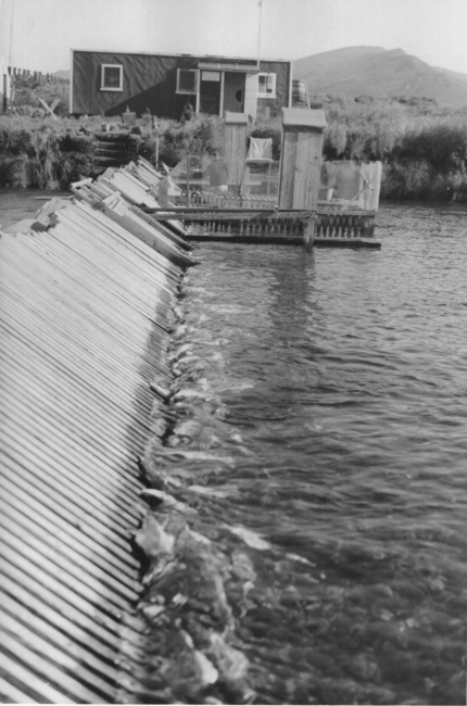 Karluk Investigations 1948. Karluk River, Alaska. Spawned-out pink salmon dead at Karluk River counting weir. Kodiak National Wildlife Refuge; ARLIS; Alaska; FWS-1253