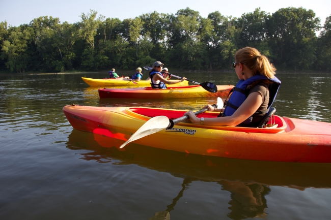 Kayakers enjoy an evening float on the Potomac River.