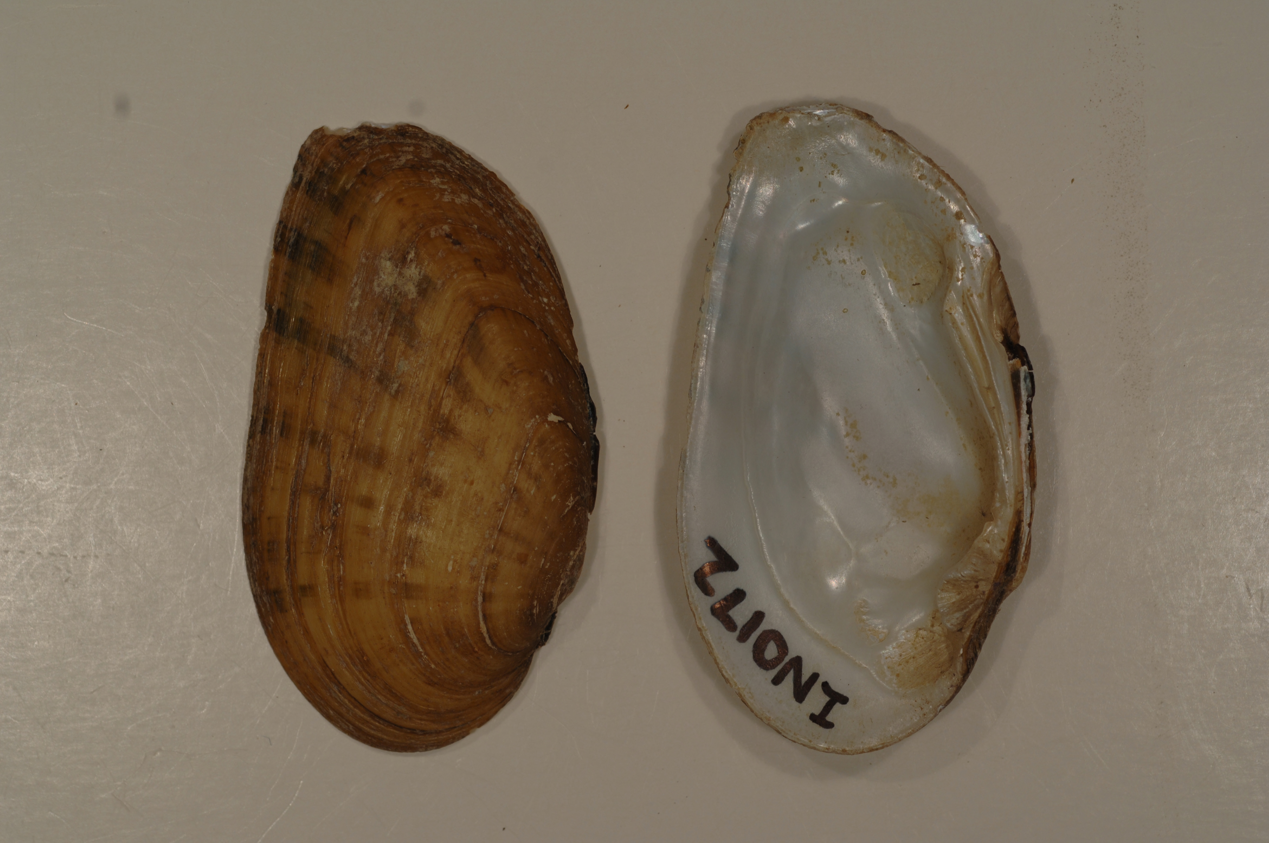 NCTC Freshwater Mussels Teaching Collection: Order: Unionoida Family: Unionidae Genus (ITIS): Ptychobranchus Species: fasciolaris Williams et al.: Use to be: Location Name: Tippecanoe River 1 mile SW Oswego Kosciusko County Location State: IN