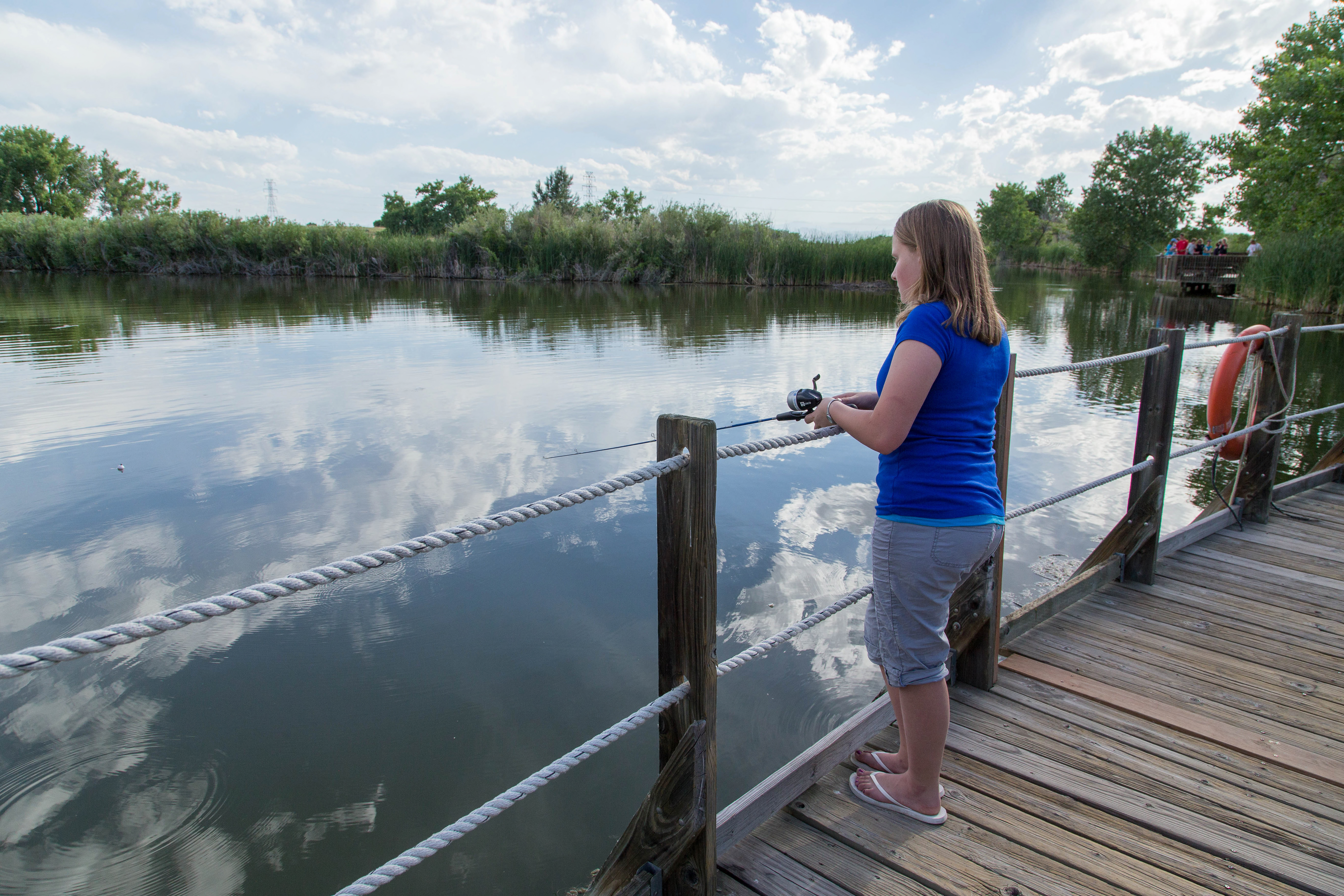 Kids fishing from a dock at Rocky Mountain Arsenal NWR.