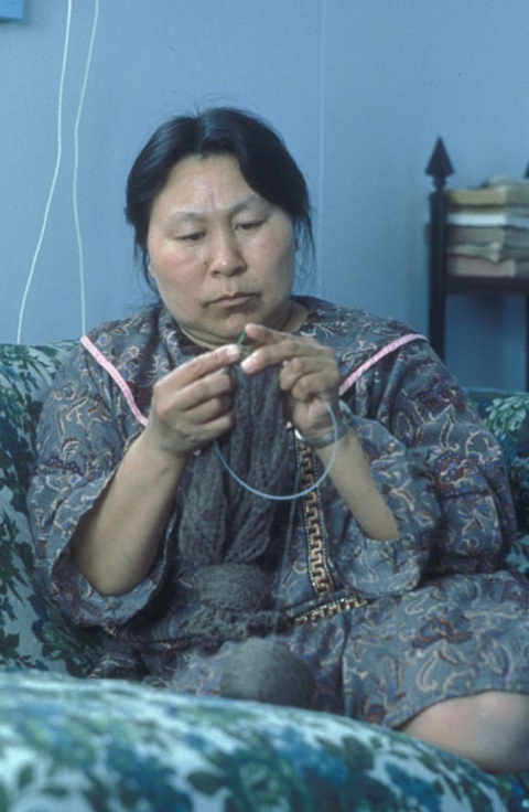 Qiviut (pronounced "kiv-ee-ute"), the downy-soft underwool from the Arctic musk ox, is shed naturally each year during the spring months. Indigenous populations; Native Americans; Crafts; Knitting; Alaska Slide Show