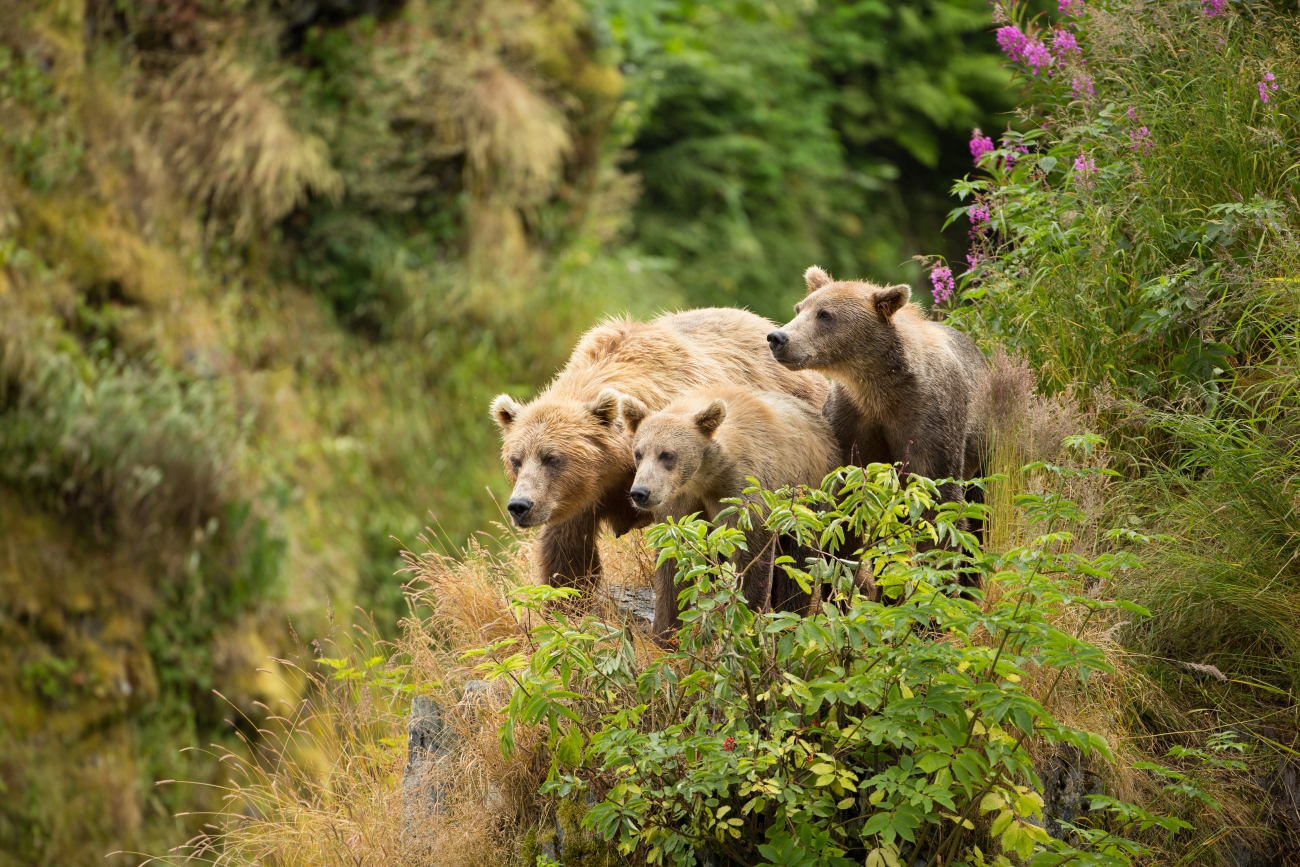The Kodiak brown bear is classified as "Ursus arctos middendorffi" and is considered a distinct subspecies from mainland brown bears; they have been isolated on the archipelago since the last ice age, about 12,000 years ago. A rich variety of vegetation, salmon, and berries provide ideal habitat for bears, and their population flourishes - estimated at about 3,000 bears within the boundaries of the Kodiak Refuge.