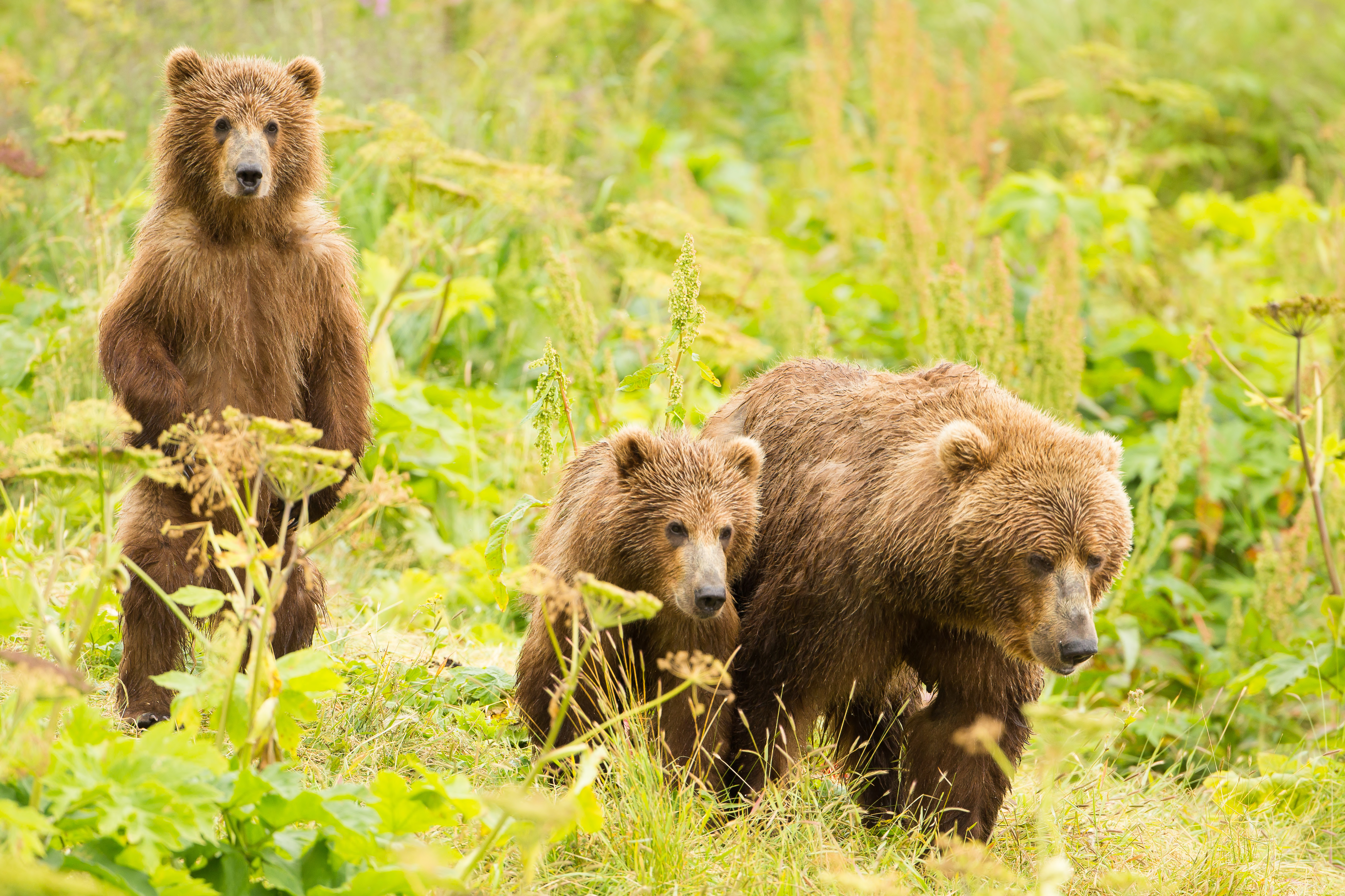 The Kodiak brown bear is classified as "Ursus arctos middendorffi" and is considered a distinct subspecies from mainland brown bears; they have been isolated on the archipelago since the last ice age, about 12,000 years ago. A rich variety of vegetation, salmon, and berries provide ideal habitat for bears, and their population flourishes - estimated at about 3,000 bears within the boundaries of the Kodiak Refuge.