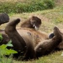 At Kodiak National Wildlife Refuge in Alaska, a female Kodiak brown bear rests after eating salmon.