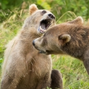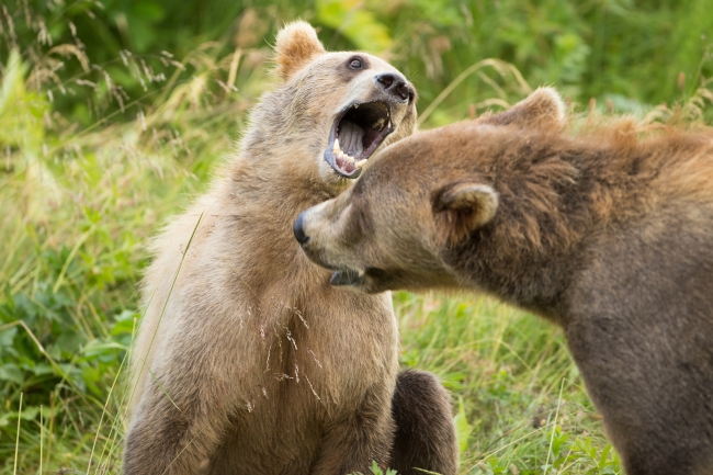 Kodiak brown bears with mouth open