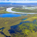 Flying over the Koyukuk River, wetlands, and boreal forest in the summer. Koyukuk National Wildlife Refuge