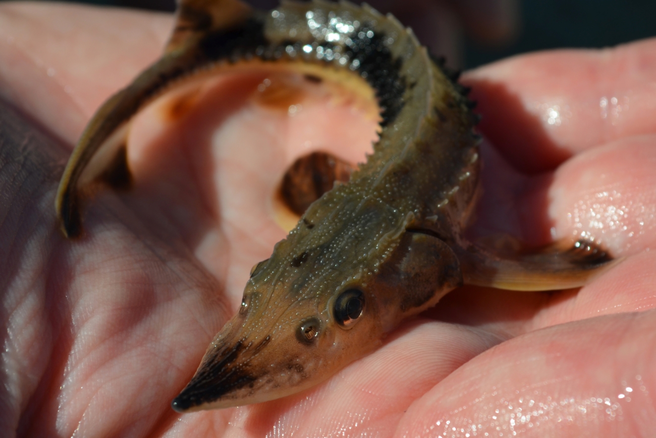 A juvenile Lake sturgeon reared at Genoa National Fish Hatchery in Genoa, Wisconsin. This fish is part of the U.S. Fish and Wildlife Service's work to restore Lake sturgeons to the Grate Lakes.