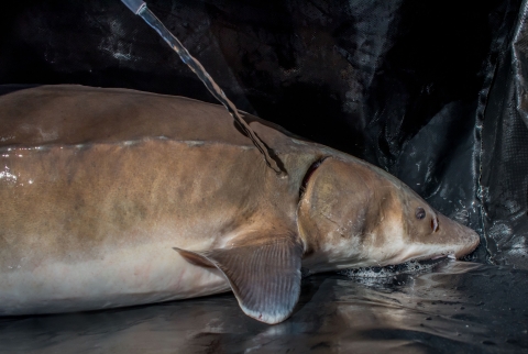 Lake sturgeon during procedure by U.S.Fish and Wildlife Service