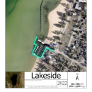 An aerial image of Lakeside Marina, with green lines indicating barriers that could be removed to increase water flow through the marina and decrease habitat for aquatic invasive species.