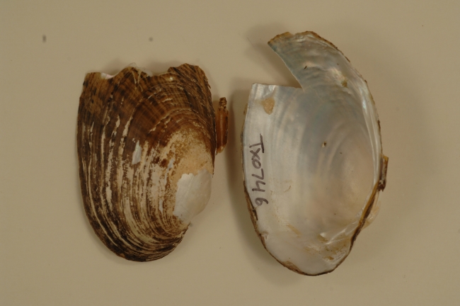 NCTC Freshwater Mussels Teaching Collection: Order: Unionoida Family: Unionidae Genus (ITIS): Lampsilis Species: bracteata Williams et al.: Use to be: Location Name: Upper Guadalupe River, Lake Nimitz, Kerrville Location State: TX