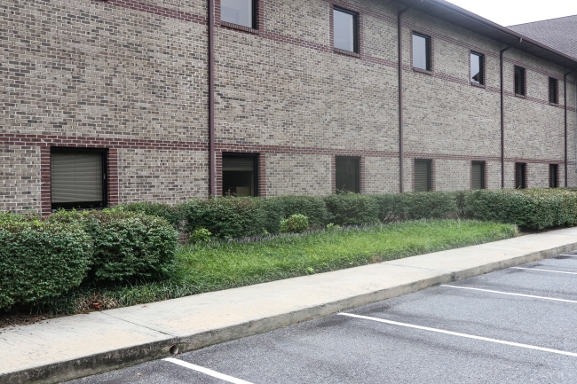 A section of the landscaping at the building housing the Asheville Field Office that hasn't been converted to a pollinator garden. Similar landscaping was in place in the area converted to a pollinator garden.