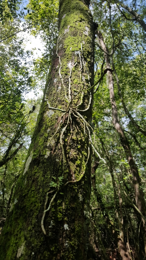 Large ghost orchid on side of tree