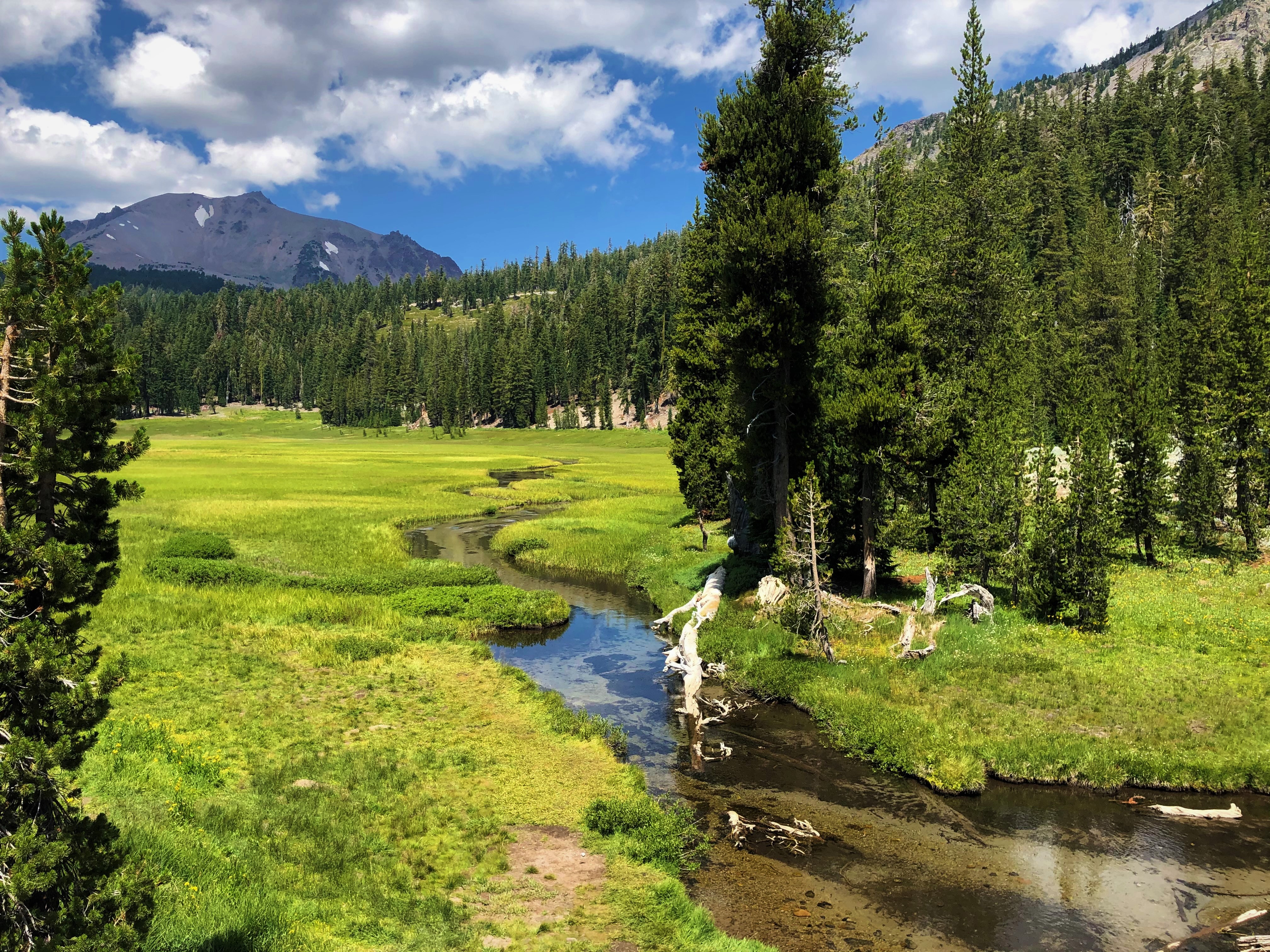 Healthy forests have many habitats and more biodiversity. In this snapshot from Lassen Volcanic National Park, different habitats can be seen in the stream, the grassy meadow, among the trees, and in the bare rock between trees in the higher elevations.