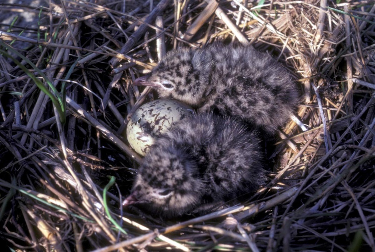 Laughing gull chicks in nest