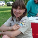 Laura Eaton, Northeast regional biologist, and a tiny leopard frog friend